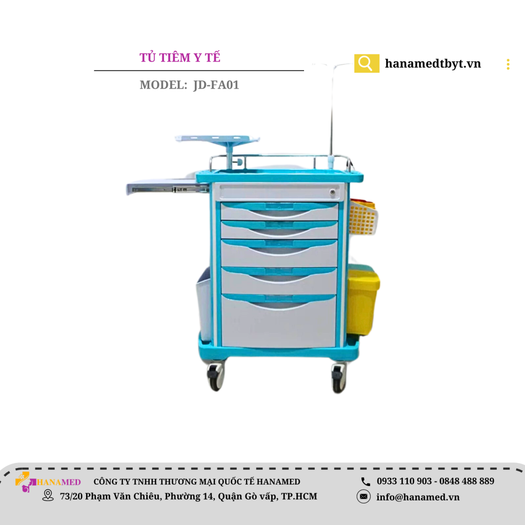 Mặt phải:Hai thùng rác ABS, một hộp vụn, và hai hộp dụng cụ sắc nhọn.